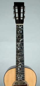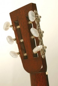 As a musician, this is the instrument I pick up whenever I’m learning a new piece and all because of how easy it is to play. The shorter scale length makes what might otherwise be difficult chord positions a secondary concern, letting me focus on the actual tune. The standard version of this instrument comes with either a slot head , a standard solid peg head, or a solid peg head with my “Rising Cloud,” motif, borrowing from the Arts and Crafts design aesthetic. Also, the bridge comes in a standard form but is also built with my signature “Bow tie” design, a reinterpretation of the old pyramid bridge.